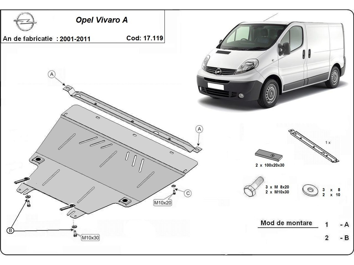 Oceľový kryt motora Opel Vivaro (2001-2011)