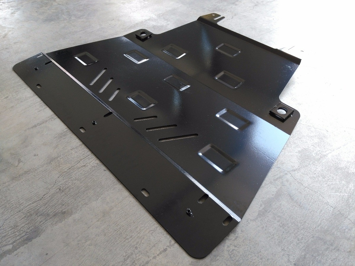 Ocelový kryt podvozku je přizpůsoben originálním montážním bodům a upevňuje se pomocí kompletní sady plechů, šroubů a matic.