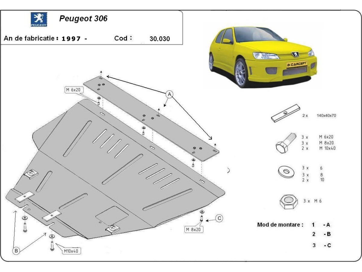Oceľový kryt motora Peugeot 306 (1997-2004)