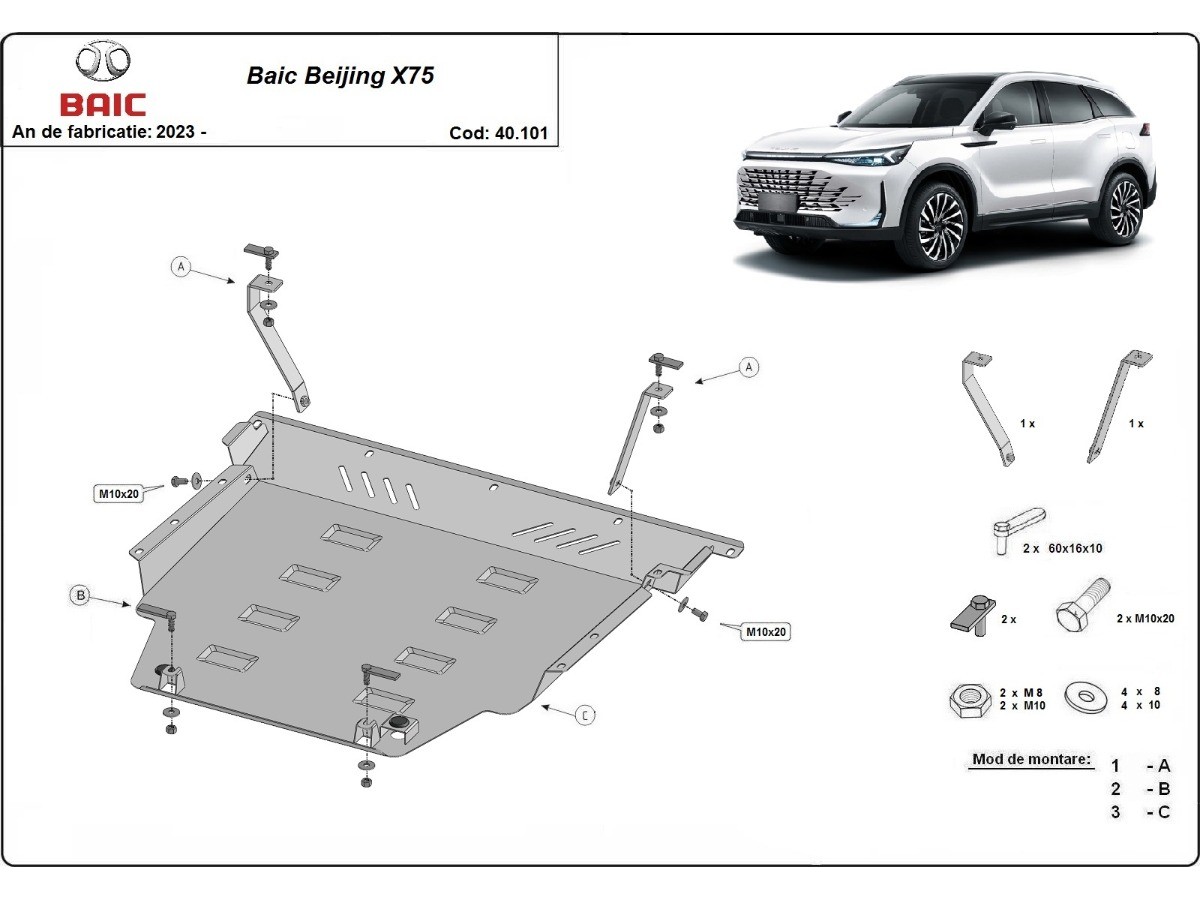 Oceľový kryt motora Baic Beijing X75 (2023-2026)