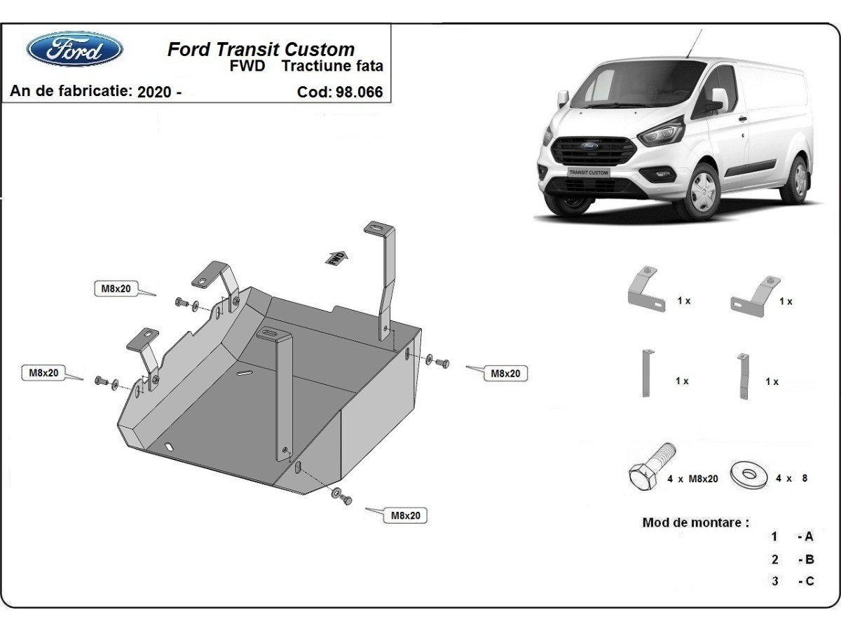 Oceľový kryt AdBlue Ford Transit Custom (2020-2023)