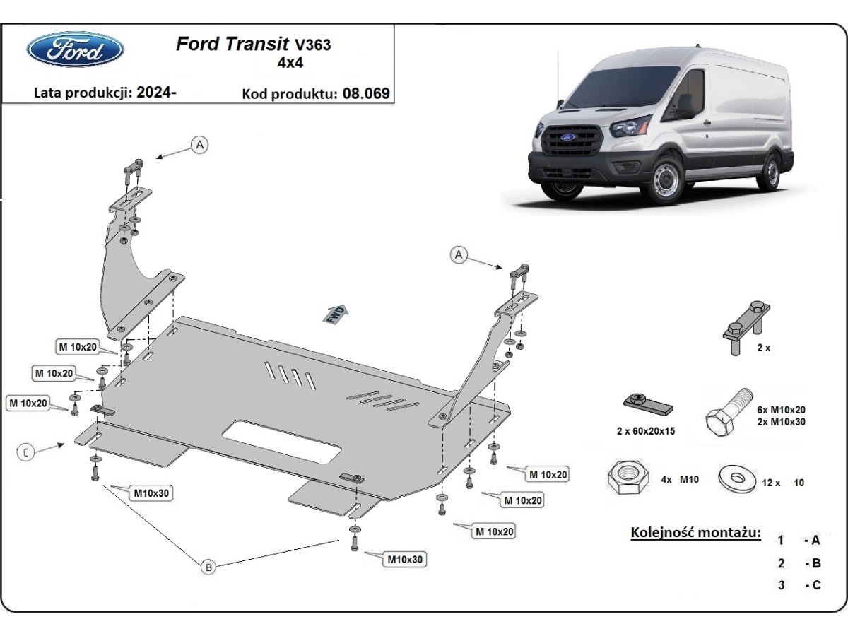 Oceľový kryt motora Ford Transit V363 4x4 (2024-2026)